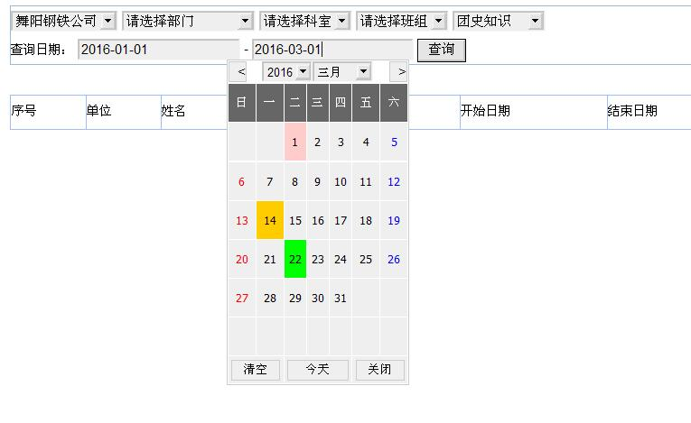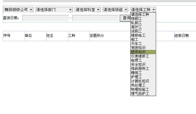 第四步:按单位、车间、班组、工种、时间区间查询。